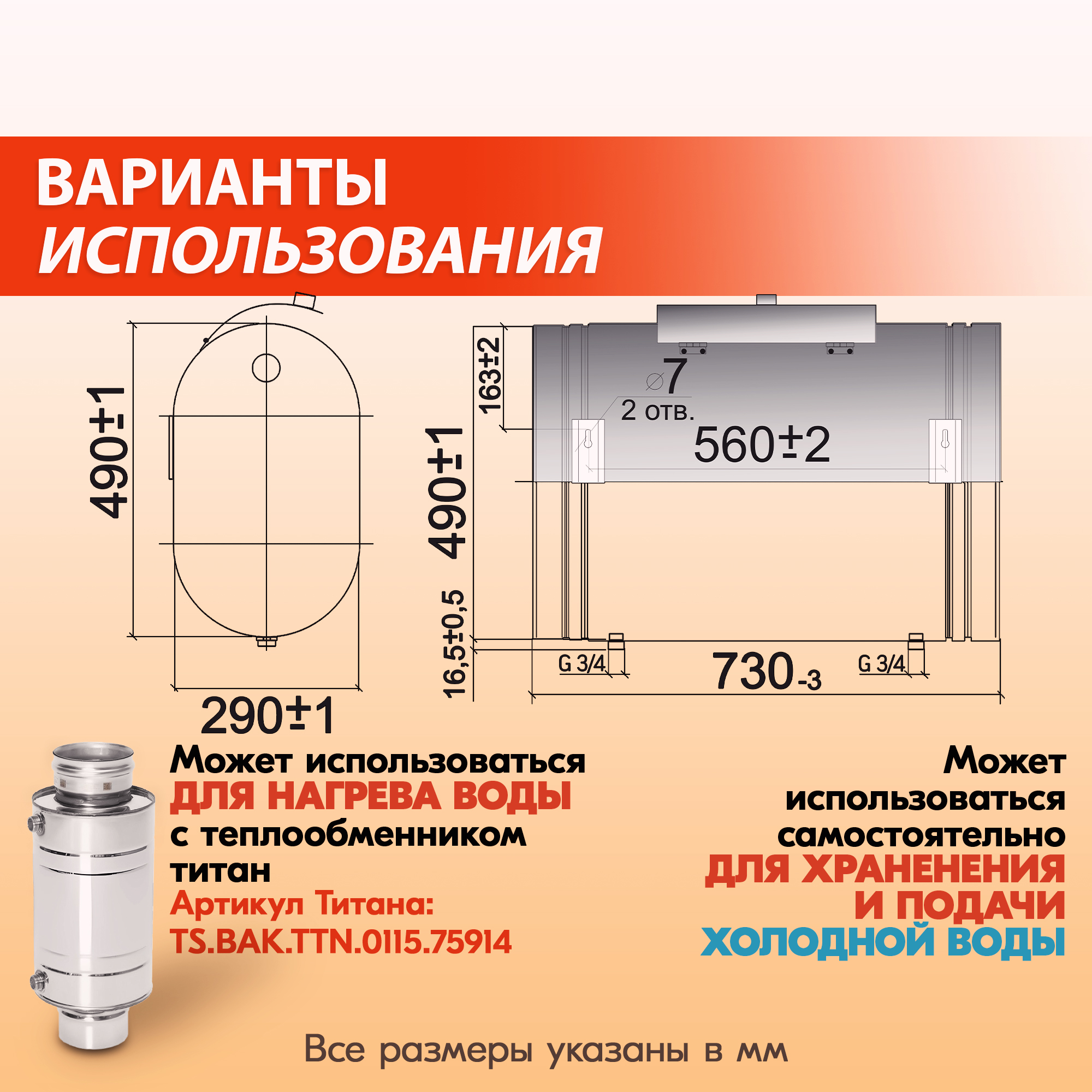 Для перехода к теплообменнику титан для сбора системы «теплообменник + навесной бак» просто наберите артикул TS.BAK.TTN.0115.75914 в поиске Озон.