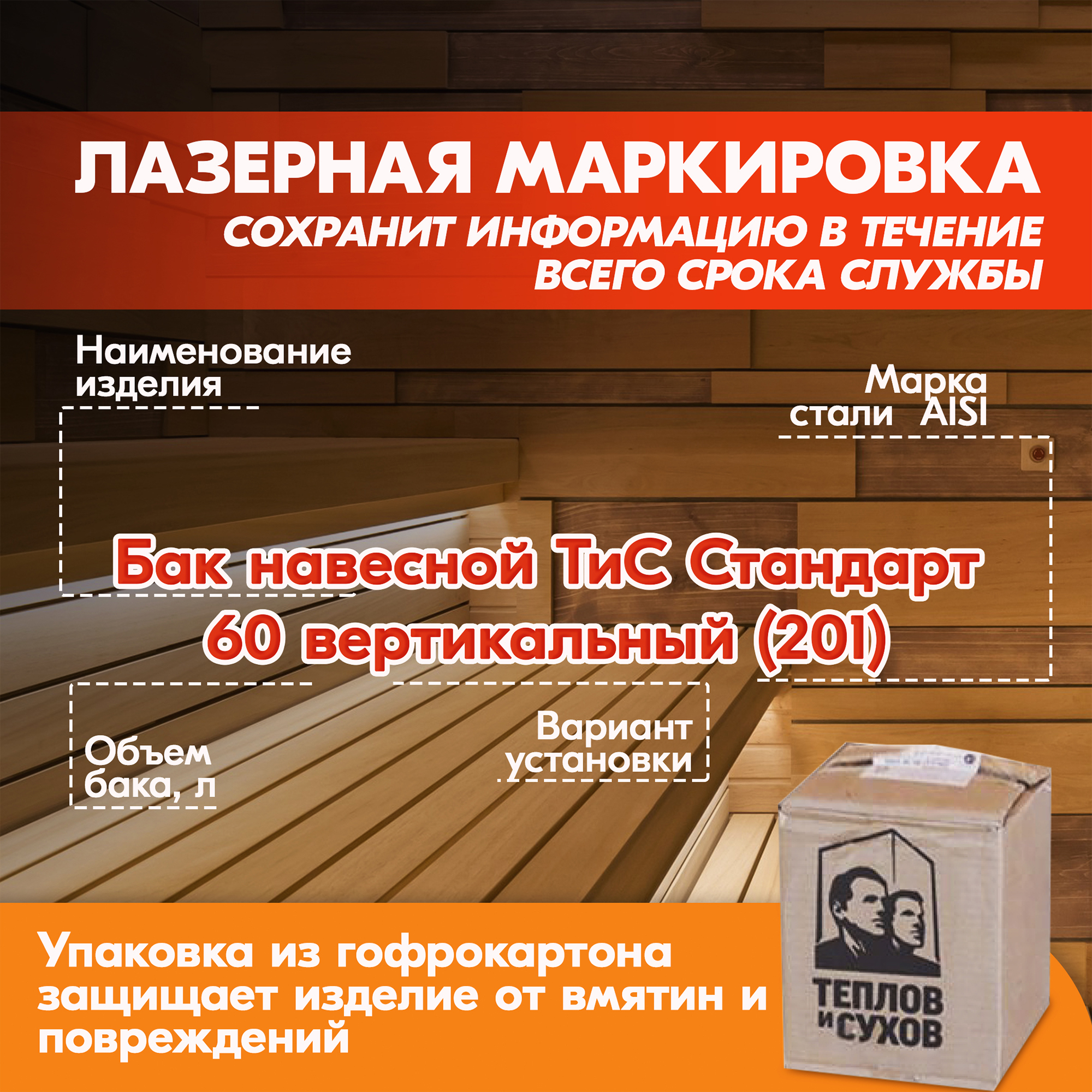 Навесные баки для горячей воды для бани из нержавейки от производственной компании Теплов и Сухов предназначены для подачи и хранения воды в банном помещении.
