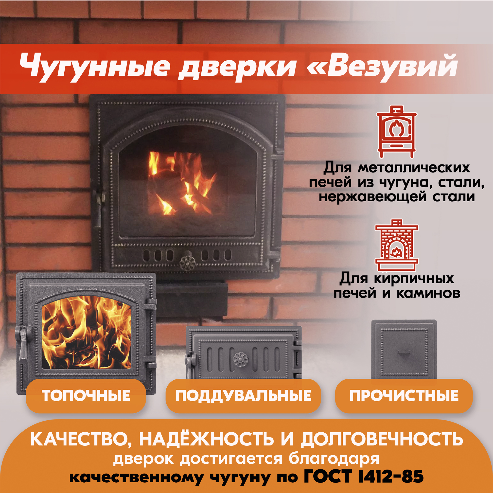 Все представленные дверки и ручки дверей изготовлены из качественного чугуна по ГОСТ 1412-85.