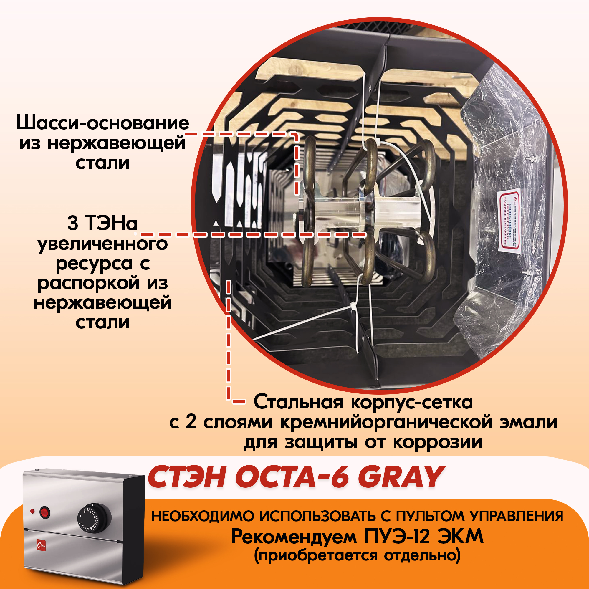 Электрическая каменка СТЭН ЭКМ 6 Octa gray в Тюмени | Доставка по России