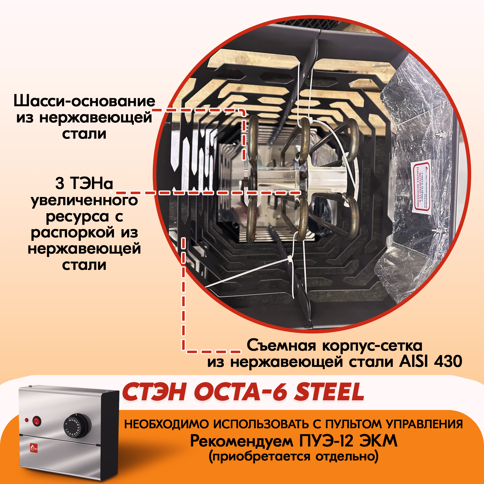 Электрическая каменка СТЭН ЭКМ 6 Octa steel в Тюмени | Доставка по России