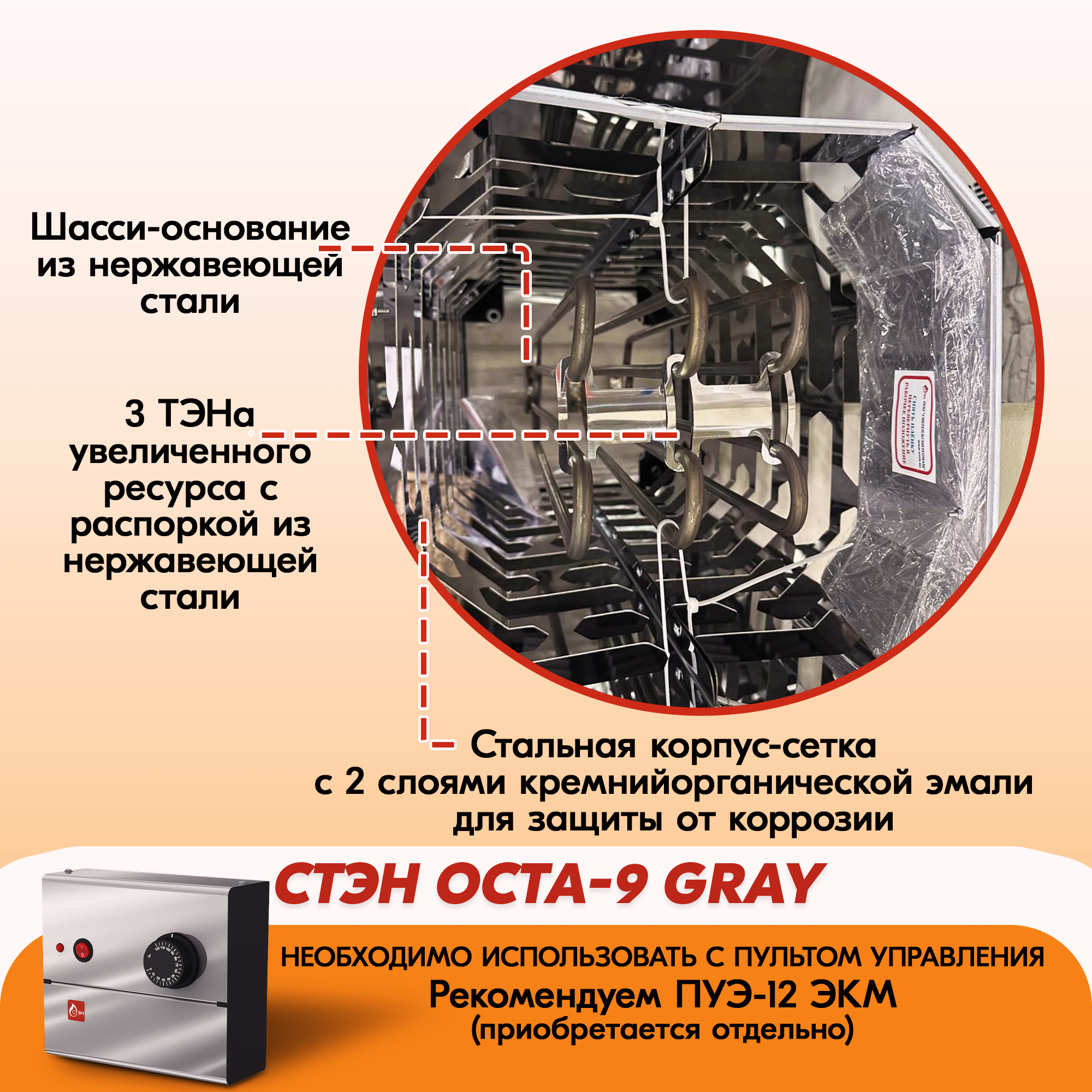 Электрическая каменка СТЭН ЭКМ 9 Octa gray в Тюмени | Доставка по России