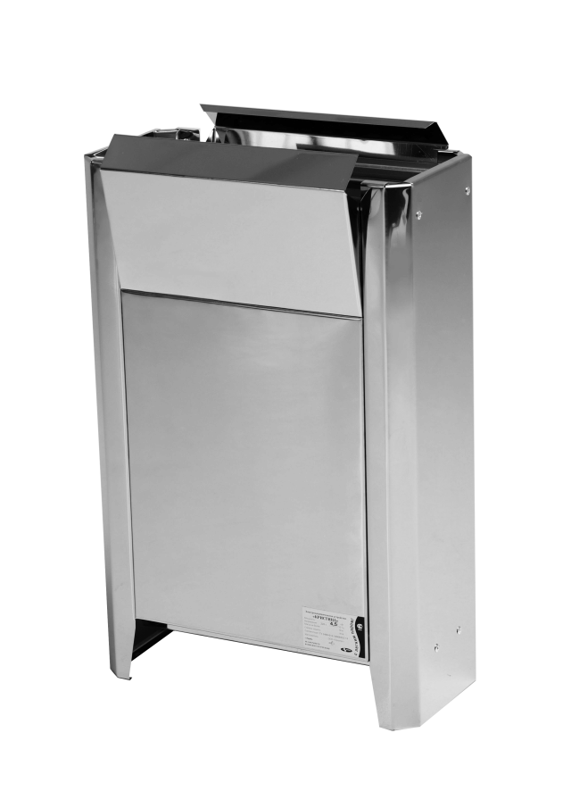 Корпус этой электрокаменки изготовлен из нержавеющей стали, а это надежность, износостойкость и отличные теплообменные качества.