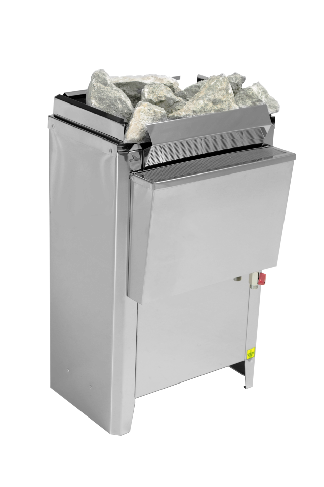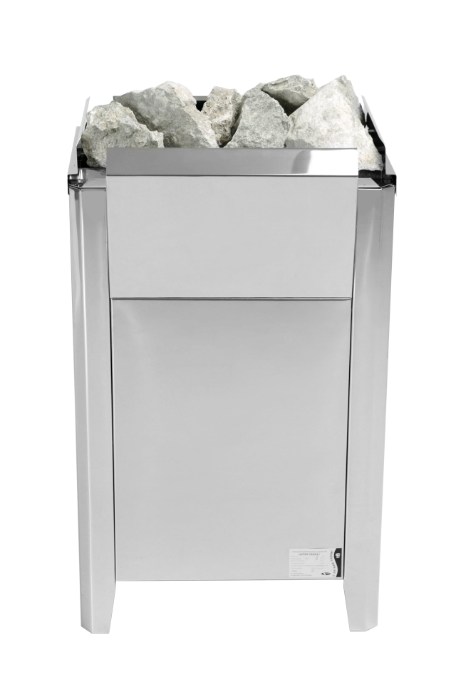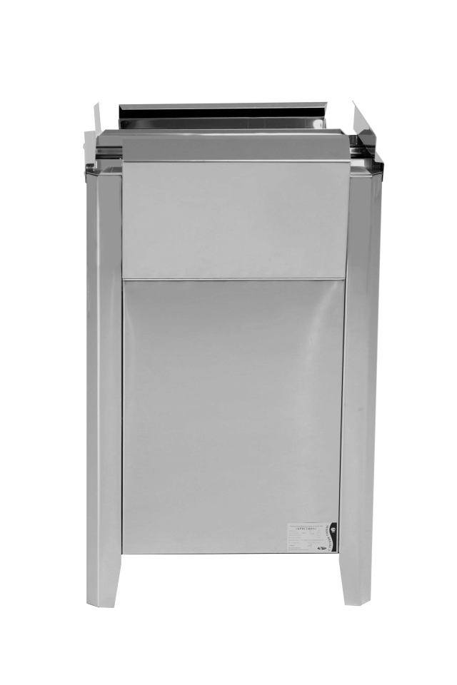 Печь постоянно модернизируется и совершенствуется. Корпус ее изготовлен из нержавеющей стали, а сам нагреватель выполненный в виде рамок, с высокоомной стальной лентой. Температура ленты не превышает 500* С, что гарантирует ее долговечность и кроме того она не «сжигает» кислород, при этом за счет большой теплообменной поверхности обеспечивает быстрый нагрев парного помещения. Управляется печь с выносного пульта.