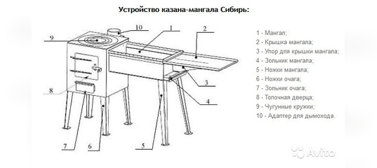 Казан-мангал «Сибирь» для дачи представляет собой сборную конструкцию, в которой объединены казан и мангал.