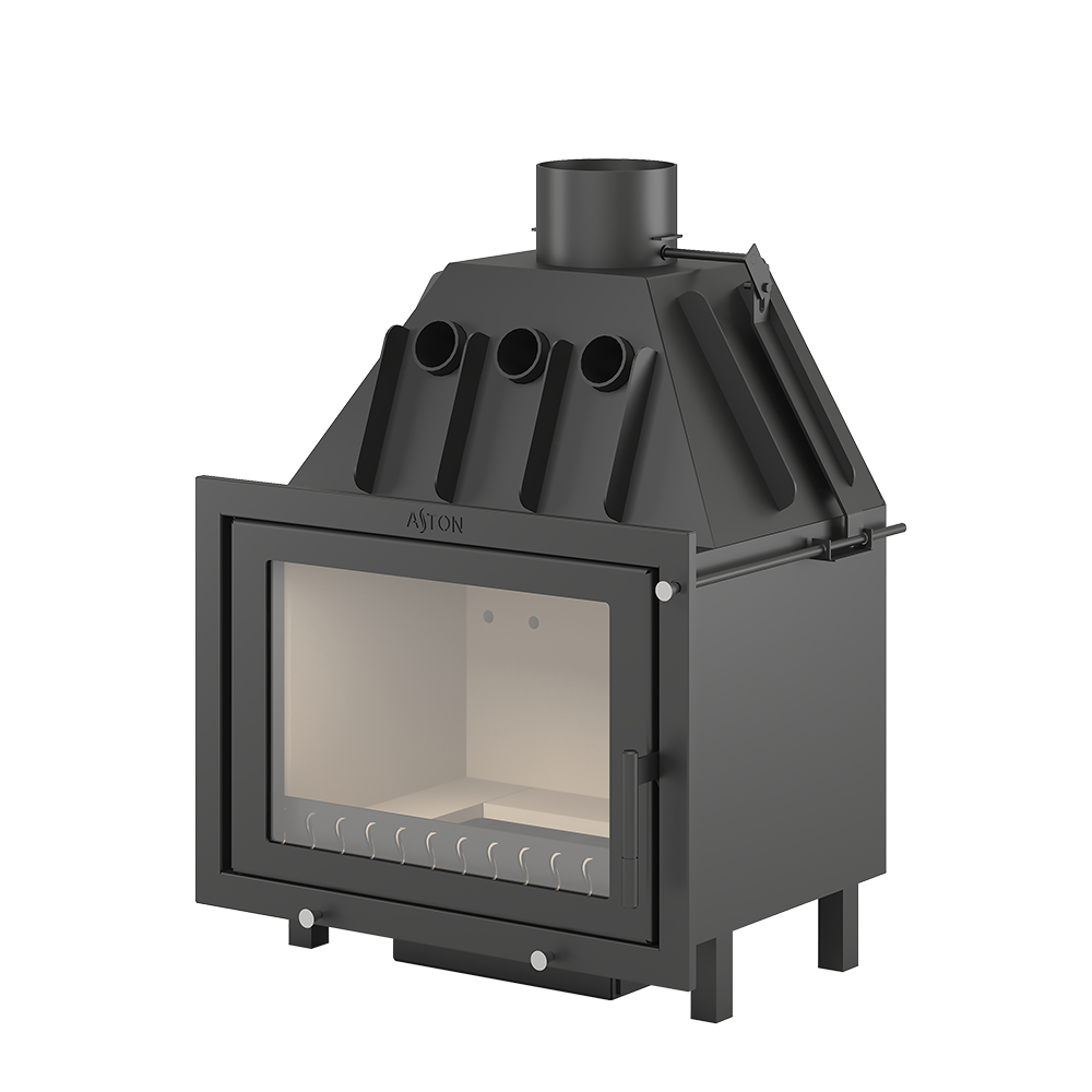 Трубы, размещённые над топочной камерой в области дымосборника, увеличивают скорость движения нагретого воздуха и усиливают конвекционные возможности каминной топки АСТОН 700. Пламя и дымовые газы, догорая, огибают пламегаситель в верхней части топочной камеры. В дымосборнике. над конвекционными трубами, расположен второй пламегаситель, который повторно меняет направление движения газов и таким образом способствует их полному догоранию в топке. За счёт совместной работы двух пламегасителей достигается максимальная тепловая эффективность каминной топки АСТОН 700, в том числе повышается теплоотдача печи путём усиления конвекции.