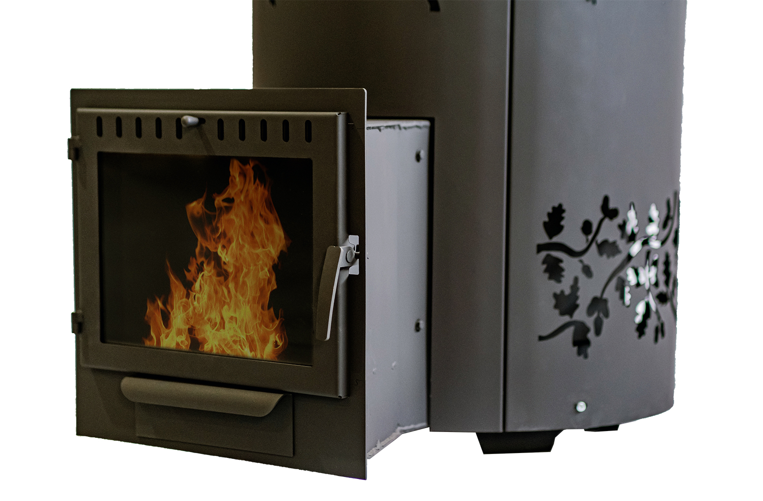√ Специальная винтовая система дымохода, позволяющая равномерно прогреть камни, находящиеся в закрытой каменке, а также эффективно обогреть парильное и смежные помещения;