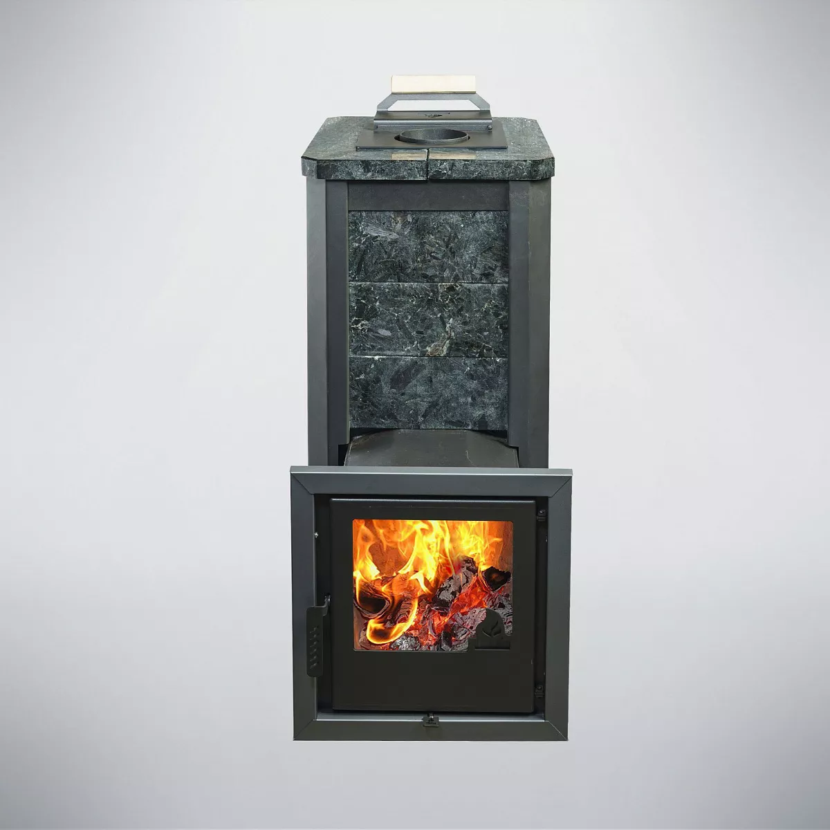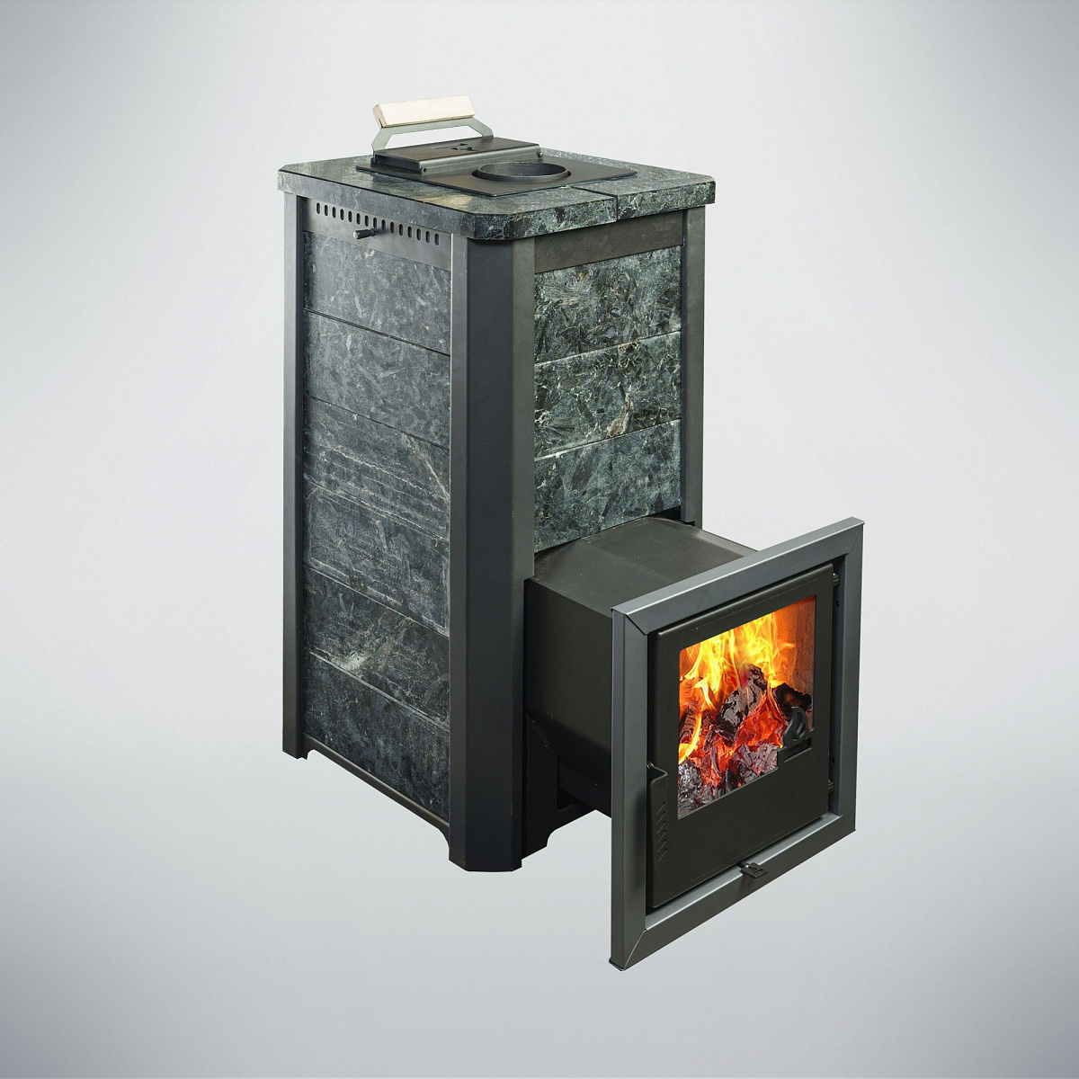 Варвара ТЕРМА Сказка – Банная печь с закрытой каменкой, облицованная в кожух из камня. В конструкции данной печи имеется закрытая каменка камень в которой нагревается до 600-О С, что позволяет получить мягкий - мелкодисперсный пар.