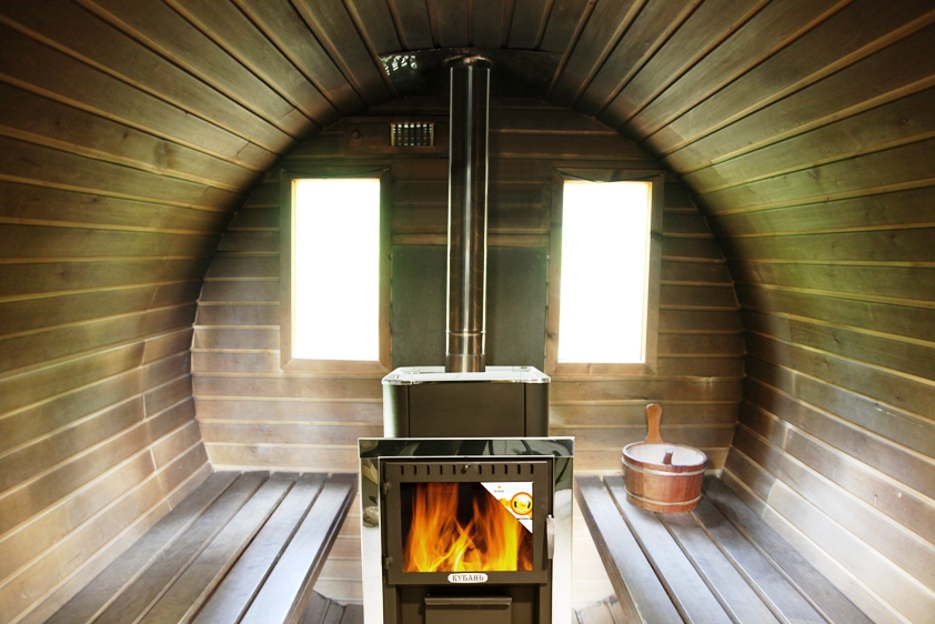 ●    Закрытая каменка с дверцей для регулирования нагрева.
