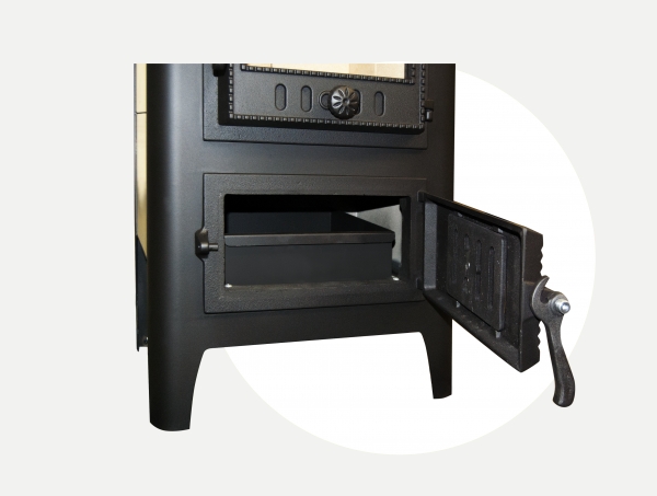 возможность приготовления пищи или поддержания ее в теплом состоянии. В большинстве моделей печей Бавария верхняя крышка выполнена из чугуна и снабжена конфорками. Некоторые модели имеют функцию приготовления пищи на открытом огне, для этого предусмотрены съемные конфорки.