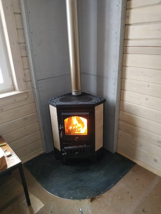 Приятная на вид печь-камин, хорошо смотрится в углу комнаты, не занимает много места из-за своей формы. Обогревает помещение до 150 м3. Присутствует режима медленного горения, что позволяет тратить меньше дров и не нужно постоянно следить, что дрова прогорели.