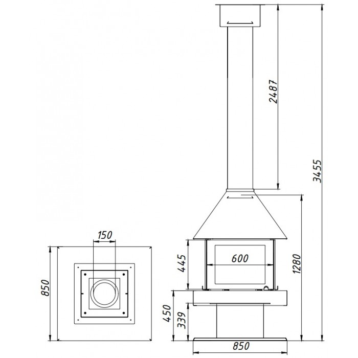 Печь-камин ЭкоКамин Эклипс Островной 4D черная