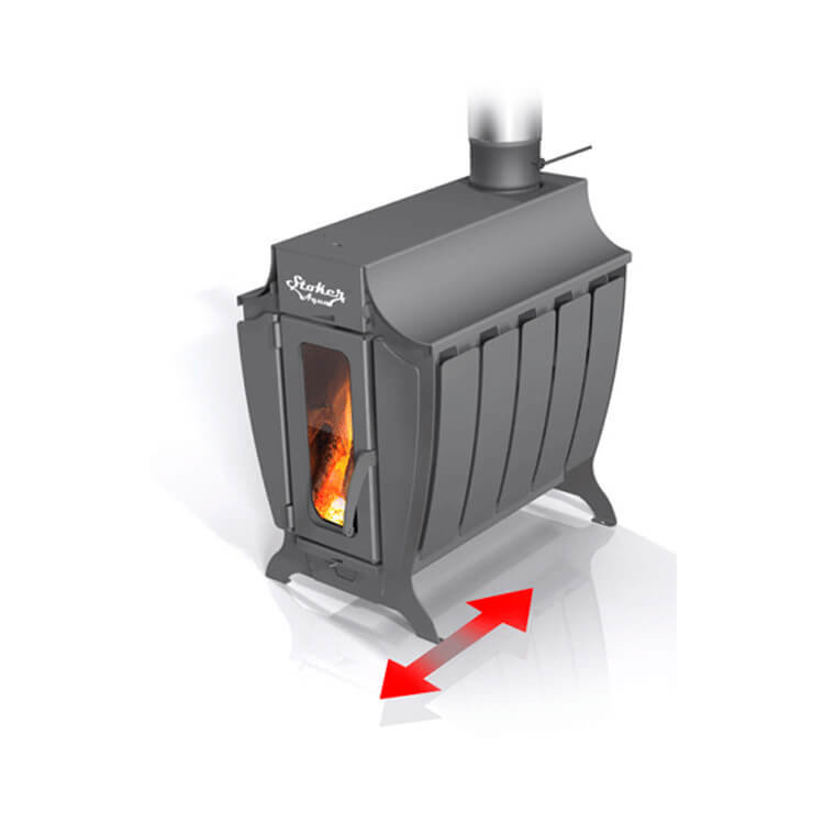Также, печь Stoker 150-G обладает возможностью нагрева воды при установке теплообменника. Это позволит подключать к печи дополнительные радиаторы отопления или выносной бак.