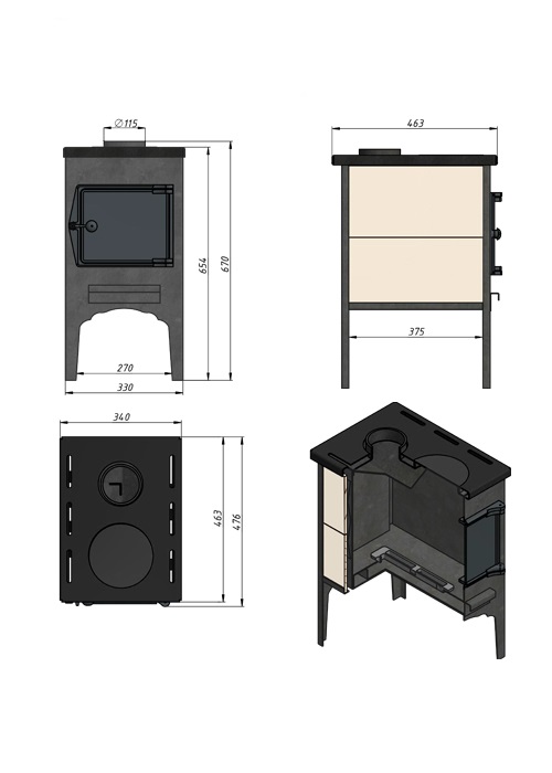 Отопительная печь «Везувий» В5 предназначена для установки в различных хозяйственных помещениях небольшого размера. Печь изготовлена из специальной конструкционной стали. Верхнюю горизонтальную поверхность можно использовать для приготовления пищи. Печь укомплектована чугунным колосником и чугунной   не герметичной дверцей Везувий ДТ-3.  Печь облицована Керамическими вставками.