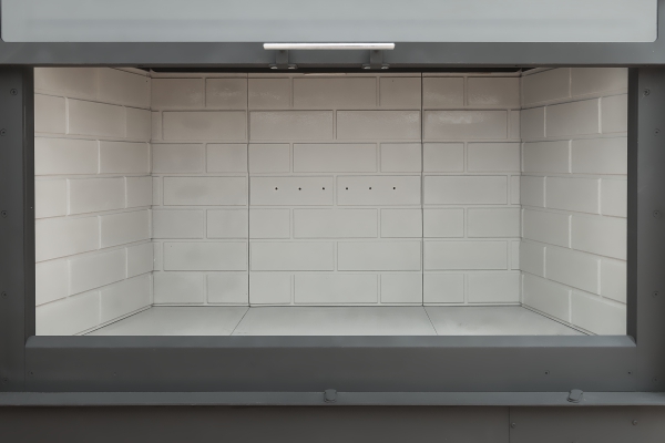 Топочная камера футерована литьевым шамотом бежевого или черного цвета и надежно защищает металлические детали корпуса топки от перегрева.