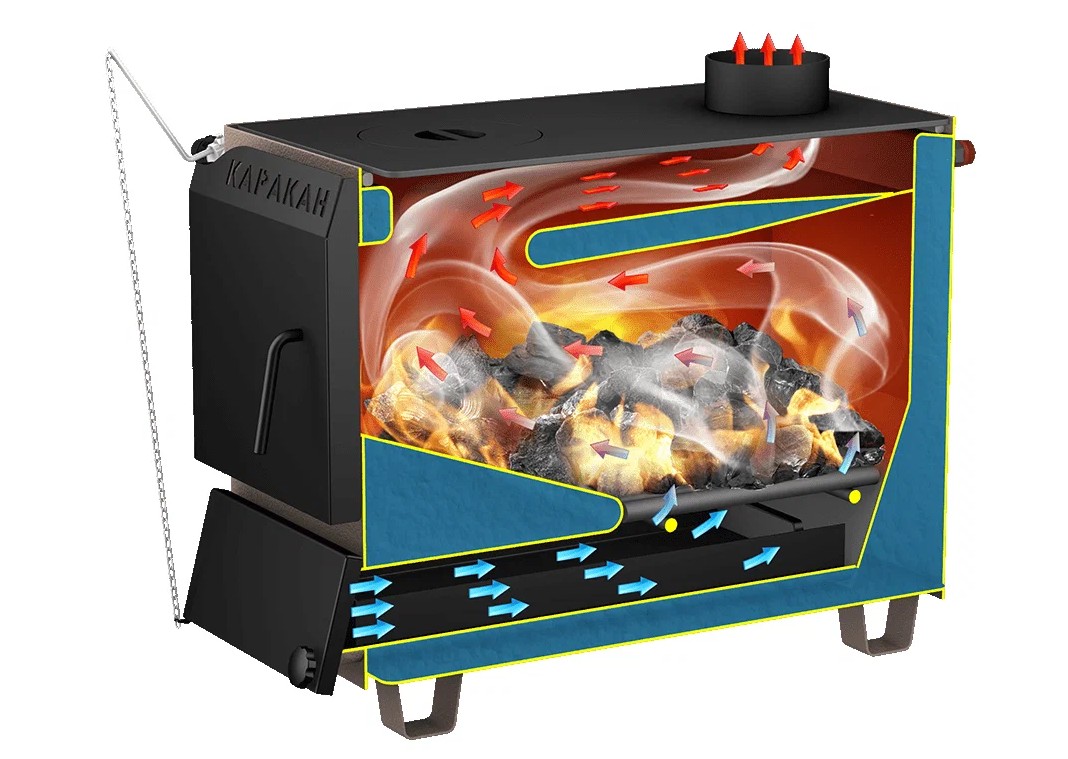 Котел Каракан - 12 ТПЭ3 предназначен для обогрева жилых и производственных объектов. Корпус котла сварной, из стали толщиной 3 мм. Длина используемых дров - до 60 см. Имеется варочная плита с одной конфоркой. Возможна установка автоматического регулятора тяги. Подключение подачи и обратки – универсальное (справа и слева). Предусмотрена возможность установки блока ТЭНов. Для управления ТЭНами предназачены пульты ПУЭ и терморегуляторы производства ГК СТЭН.