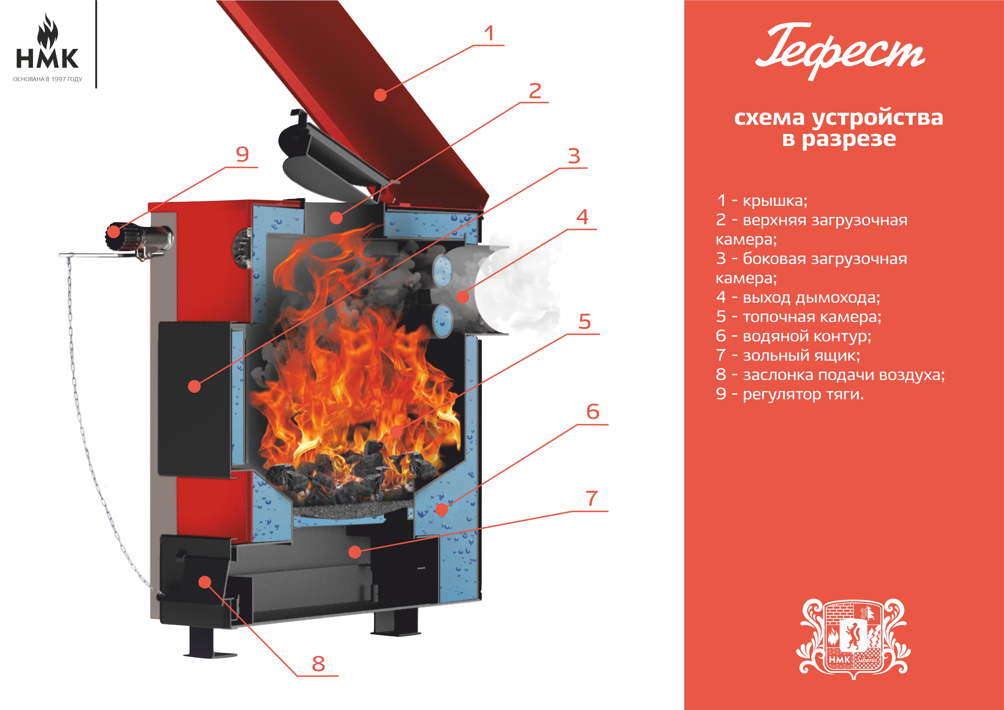 Котел твердотопливный НМК Сибирь-Гефест (Gefest) КВО-15