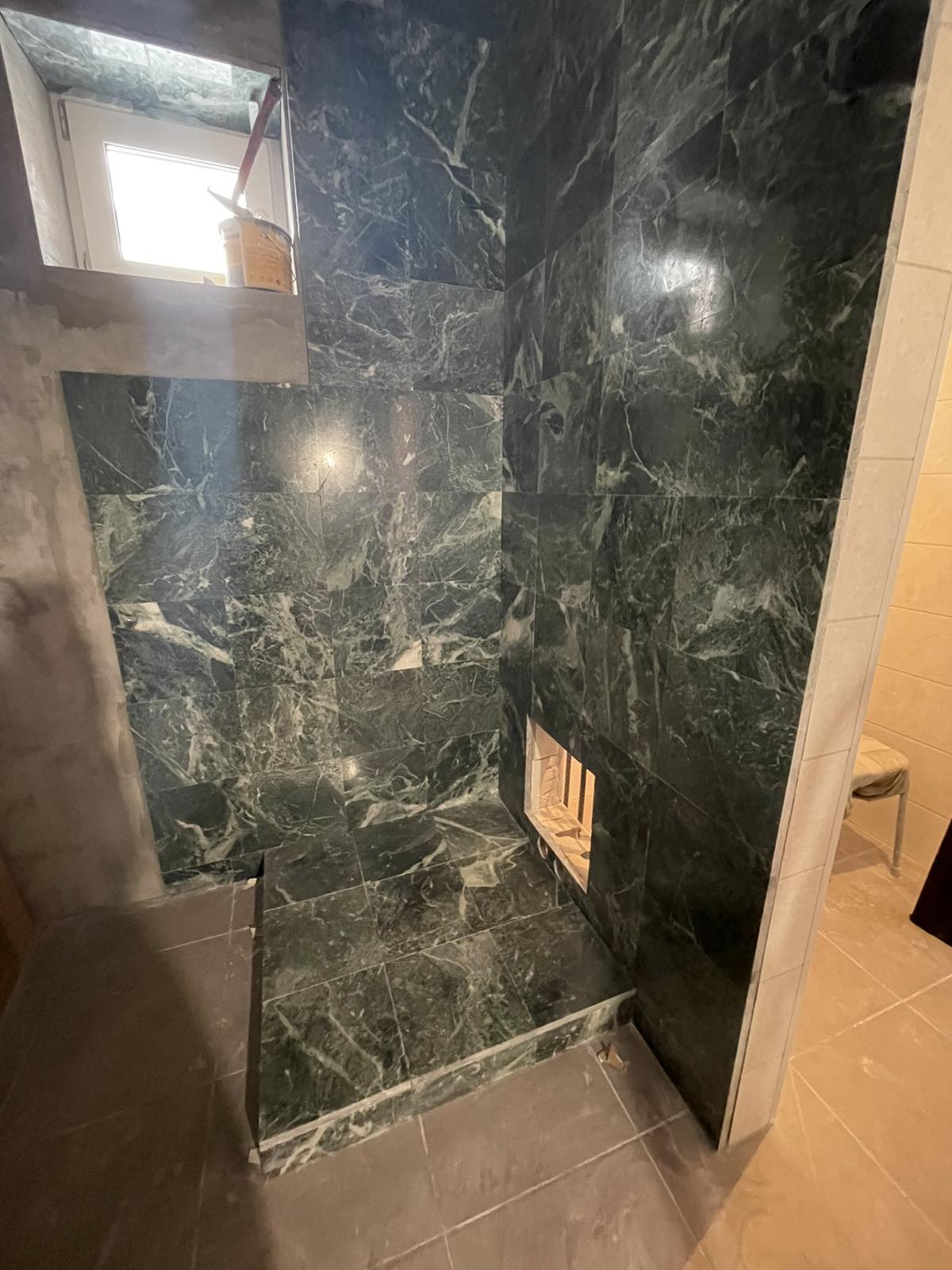 Обустройство парной с облицовкой змеевиком с установкой банной печи и дымохода